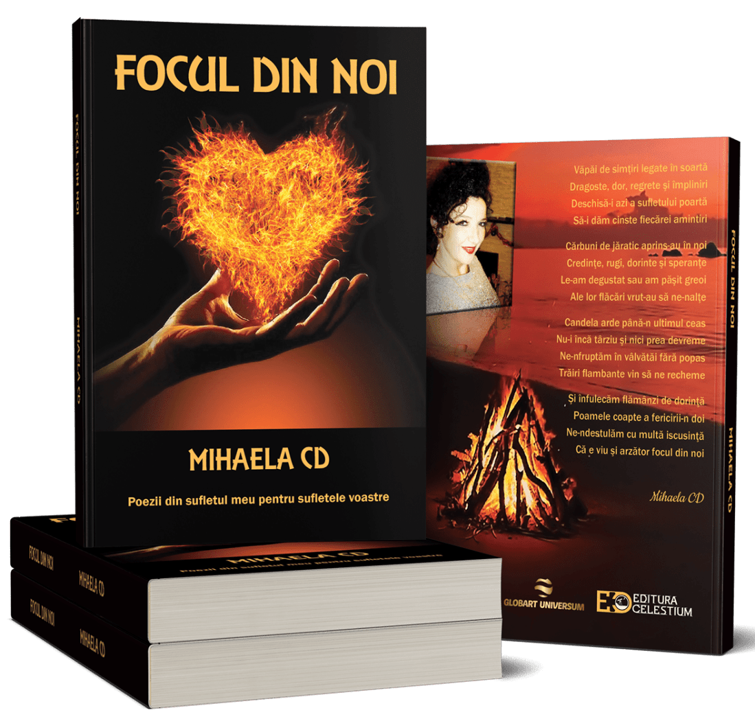 In volumul Focul din Noi al autoarei Mihaela CD, descoperim armonia dintre vers si pictura, 240 de pagini pline de vibratie si culoare. Picturile sunt realizate de artistul Mircea Rustiuc. O carte de exceptie, bogata in continut care nu trebuie sa lipseasca din biblioteca dumneavoastra! Comandati acum la numai 25$, pret promotional 30% off inainte de lansare! Pretul intreg 35$. Livrare gratuita oriunde in lume! Comanda acum!