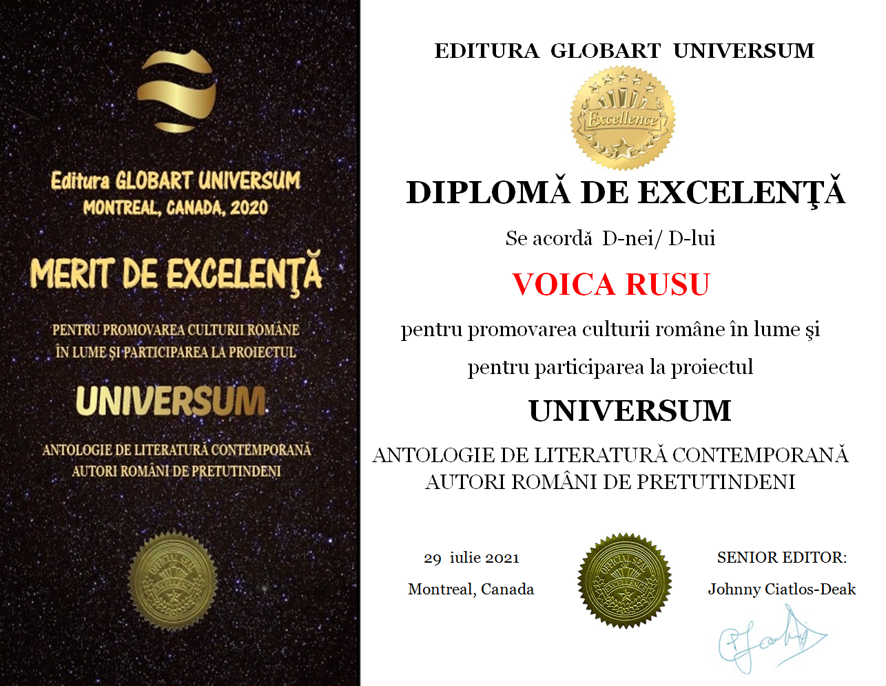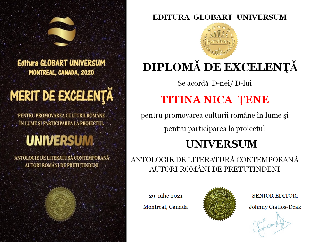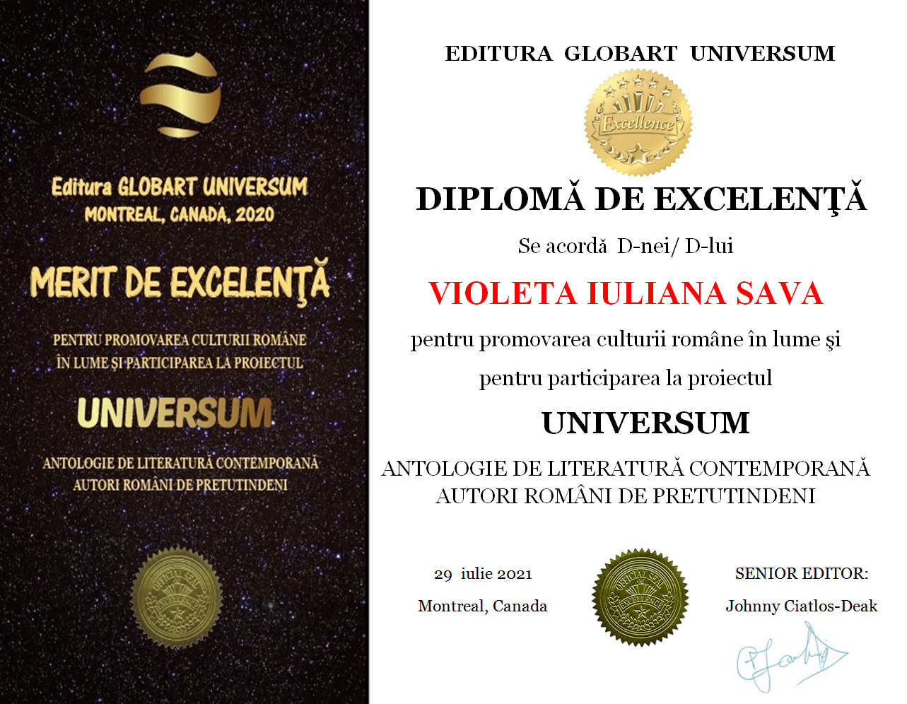 Asa cum am anuntat , toti scriitorii care au fost publicati in aceste volume vor primi diploma de Excelenta si meritul de Excelenta