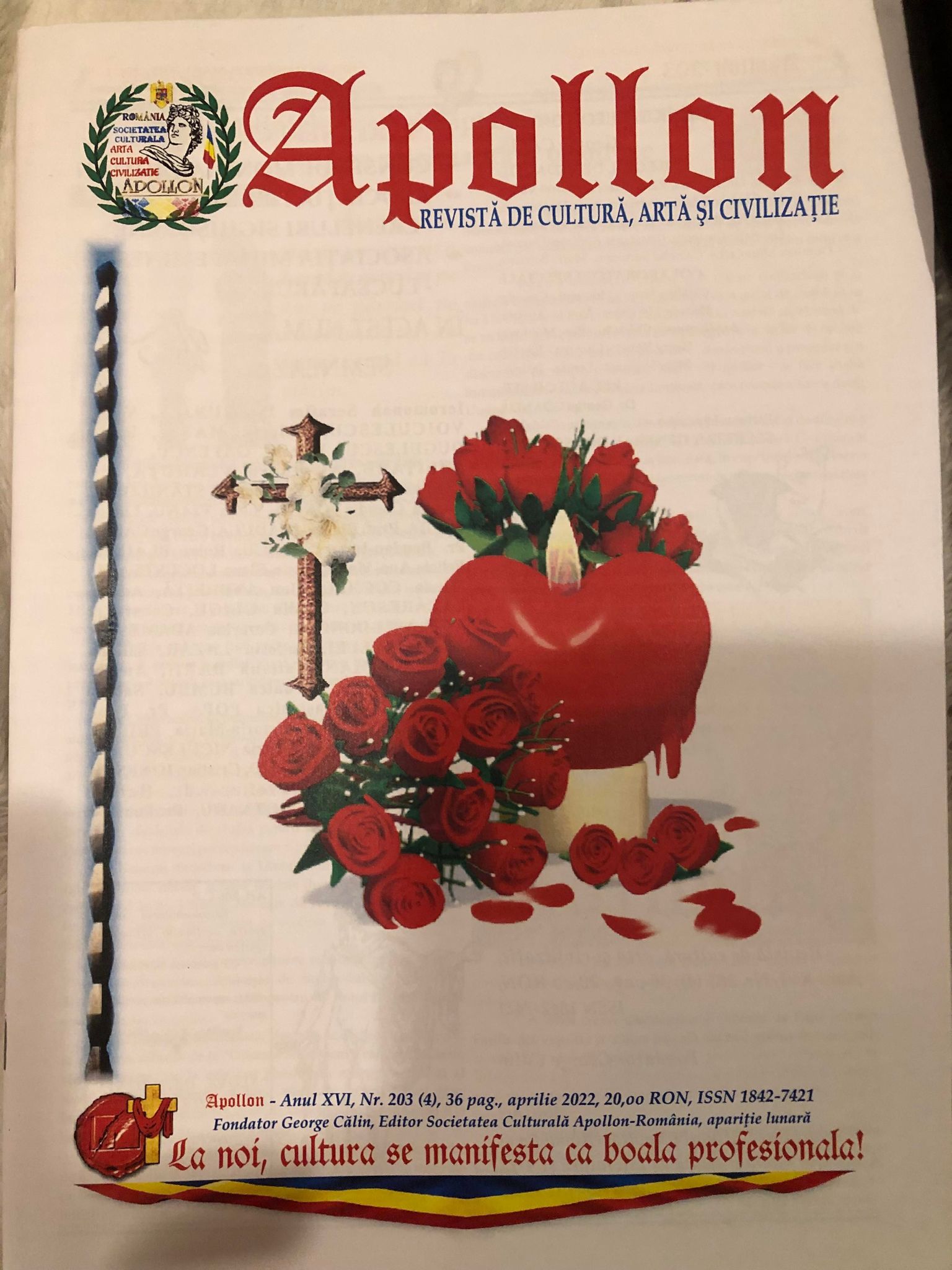 Revistele Apollon nr 1-2-3-4-5 /2022 au fiecare 36 pagini , sunt realizate pe hârtie subțire de ziar, imprimate color și adună în paginile lor articole, poezii, proză și curiozități. Le-am răsfoit în mare și voi reveni asupra lor desigur căci acum mai am pachete de deschis.