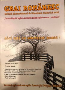 Revista Grai Românesc nr 1/2021 uimește prin bogăția și diversitatea materialelor prezentate în cele 100 de pagini monocolore. O grafică de bună calitate, copertă cartonată și o editare atentă și calitativă , caracterizează aceasta revistă de debut. Mă regăsesc la pagina 57 /58 cu două poezii dragi mie ”O mie și una de lacăte” și ”Ecoul ultimului sărut”
