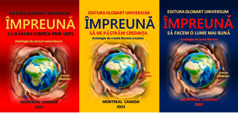 Editura Globart Universum din Montreal vă invită cu drag să participați la cele trei antologii tematice din colecția ”ÎMPREUNĂ”, cele trei antologii sunt următoarele: Împreună să dăruim iubirea prin vers – antologie de versuri nemuritoare,Împreună să ne păstrăm credința – antologie de creații literare creștine, Împreună să facem o lume mai bună – antologie de texte literare.