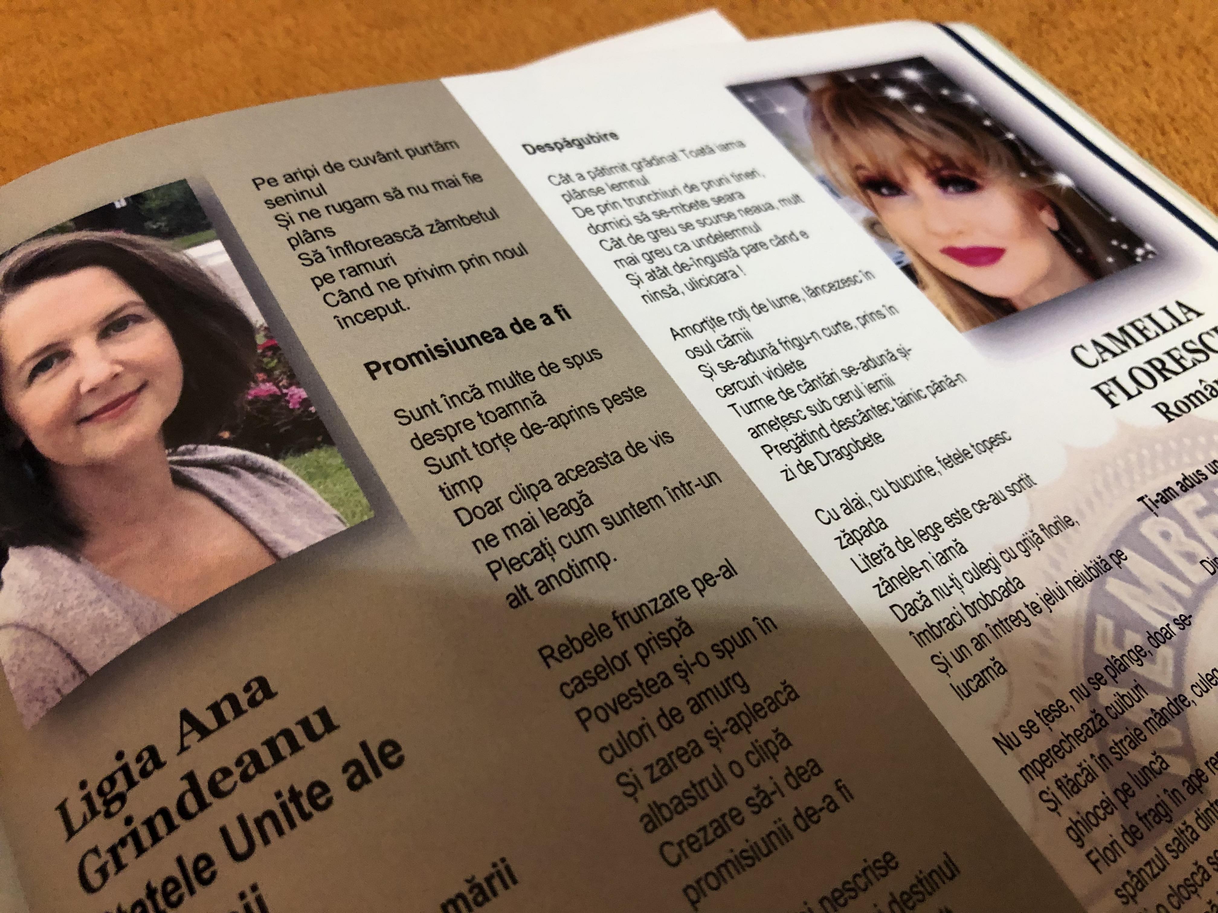Ana Munteanu Drăghici – Statele Unite ale Americii, poartă în suflet puternice rădăcini românești, iubirile ce au urcat la cer, o țară unde râurile sunt „Iordanuri”, munții sunt „scări de lumină”, cu teiul lui Eminescu din care „înmuguresc iubiri”, un „popor de poezie” care renaște din „românescul iubirii”.