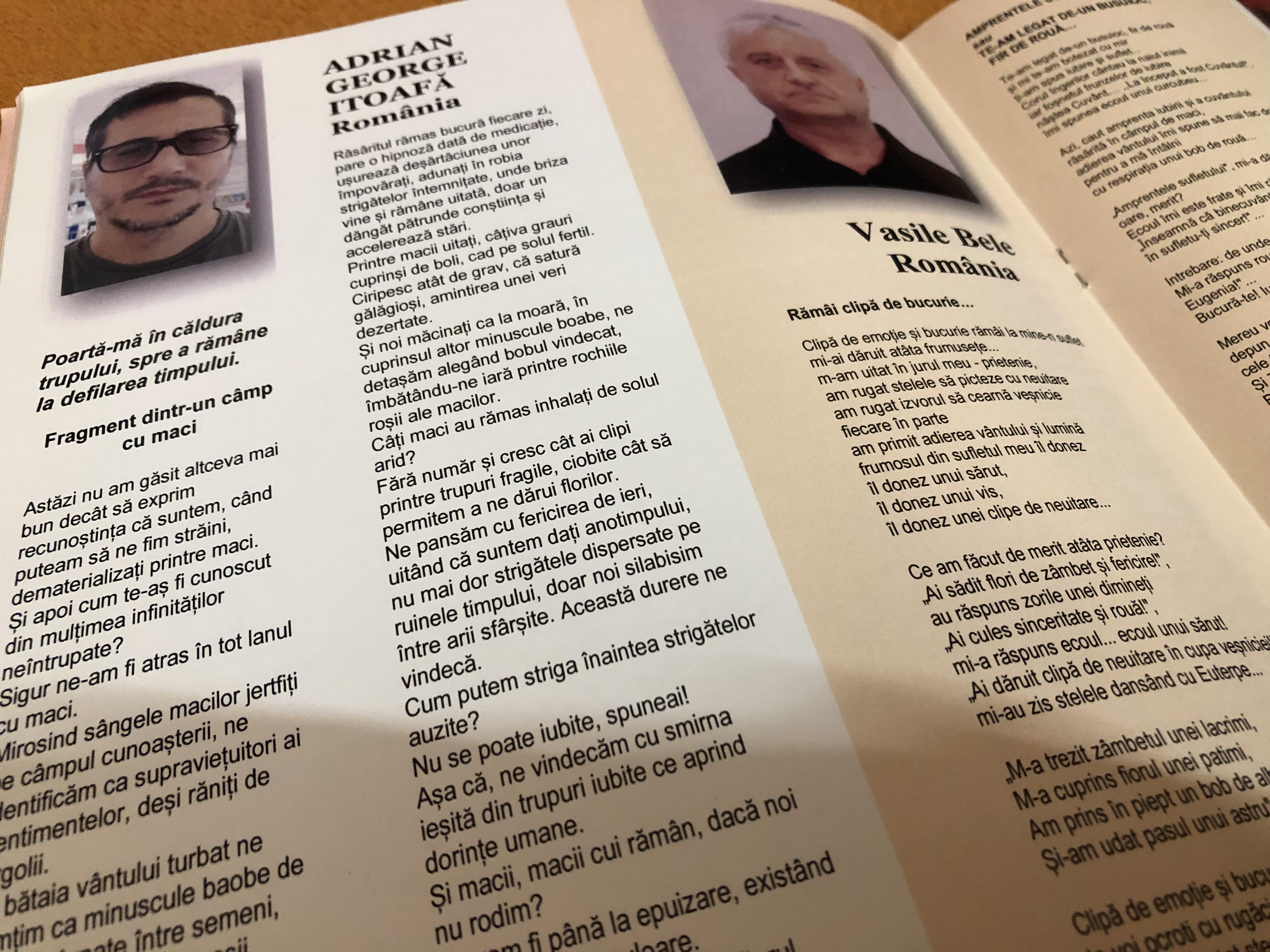 Ioan Romeo Roșiianu – România, cu un stil al scrierii inconfundabil, ne poartă între vis și realitate în poemul „Pe strada mea a trecut un demon cu aripi”, în care descoperim cum avea „sufletul în mâini / aveam inima-n ceruri şi lumina-ntre pleoape / Dumnezeu mă ţinea pe genunchi / îngerii-mi făceau cu mâna / raiul dorit avea încă porţile deschise-ntre vremi”. Superbă construcție literară, ca și perspectiva deschisă a devenirii proprii.
