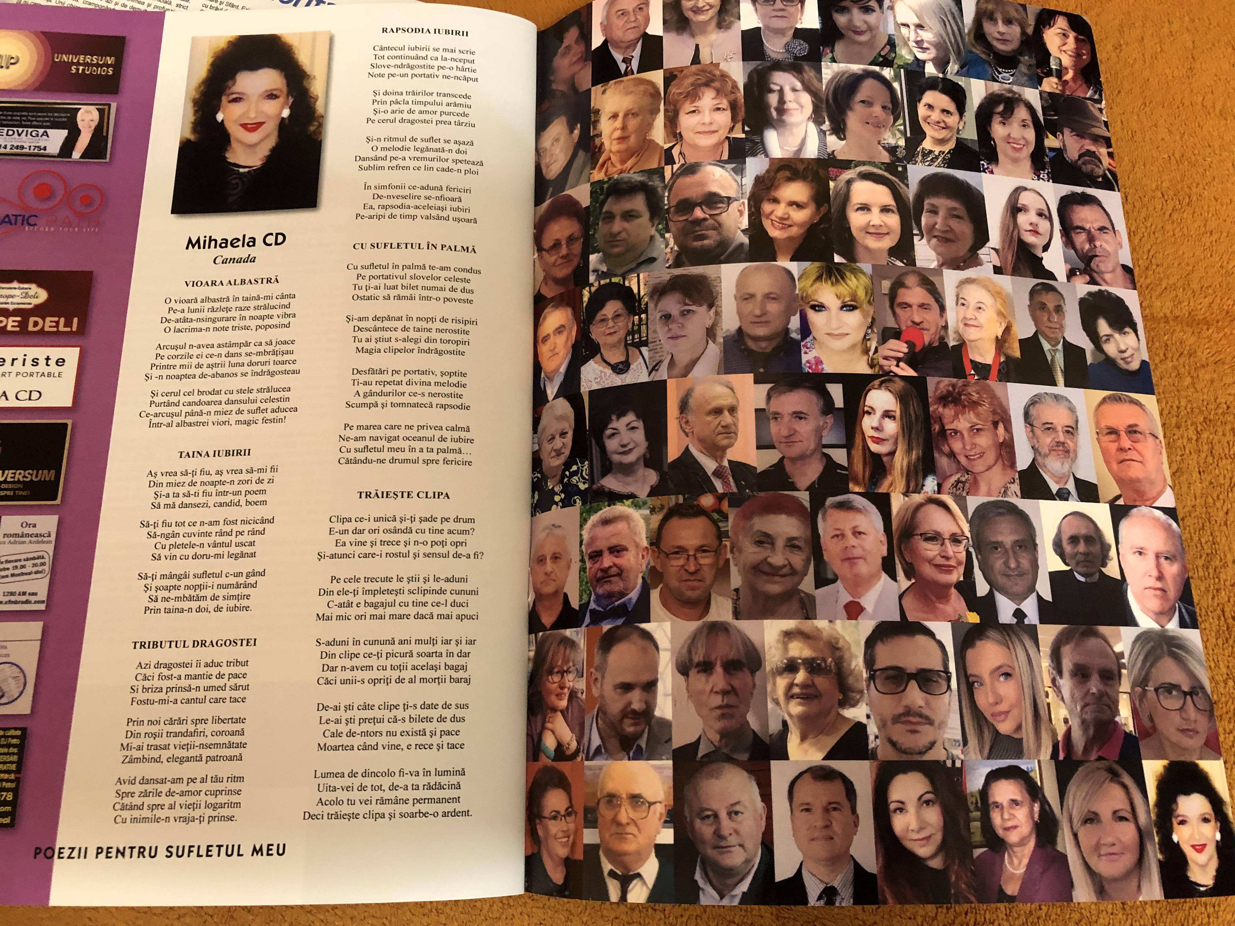 Zilele trecute am primit din Canada trei Antologii intitulate :”ÎMPREUNĂ să dăruim iubirea prin vers“ , “ ÎMPREUNĂ să ne păstrăm credința și ”ÎMPREUNĂ să facem o lume mai bună“, inclusiv revista trimestrială “Poezii pentru sufletul meu-Revista românilor de pretutindeni.“