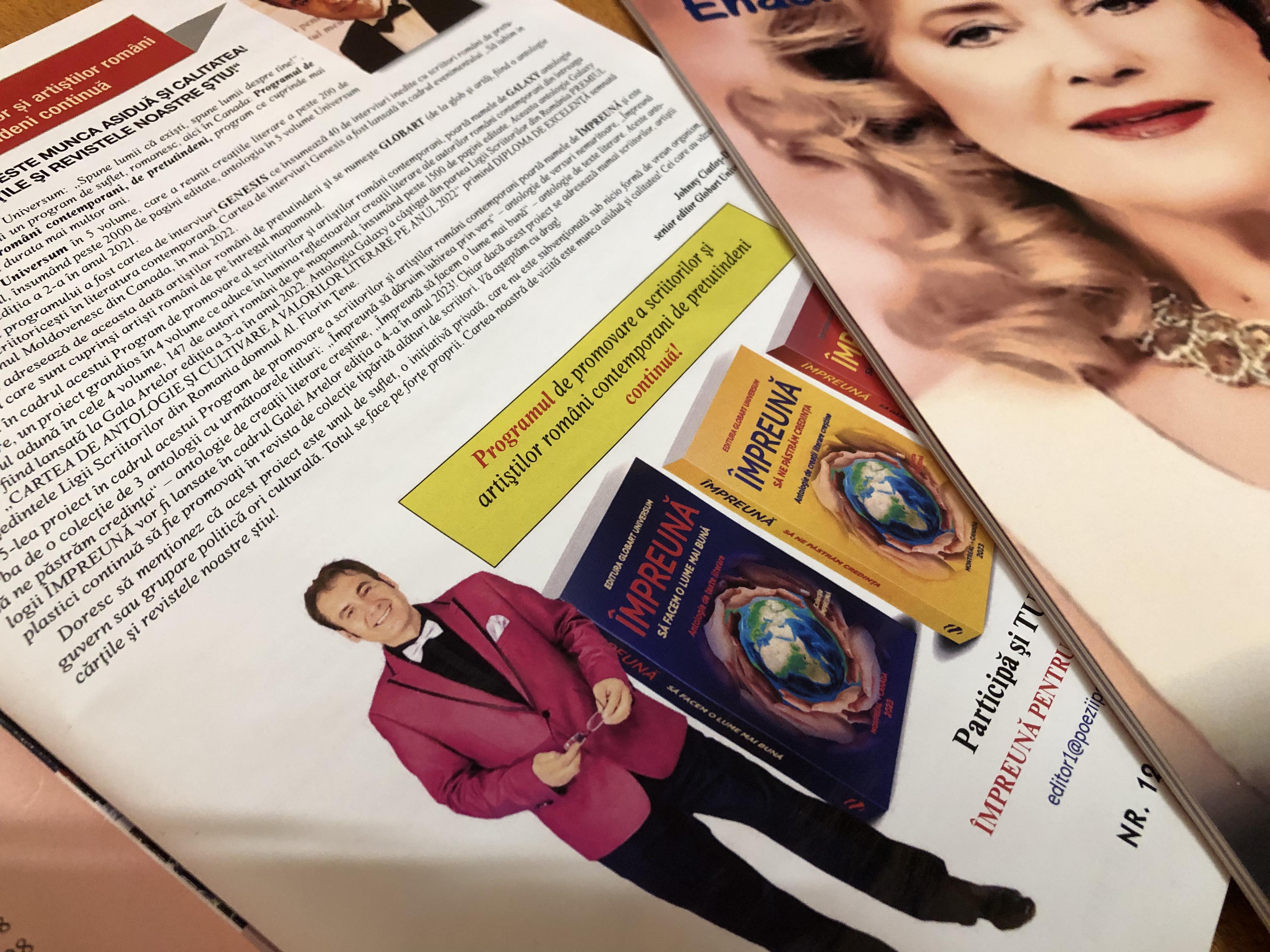 Am primit cu bucurie Antologiile „ÎMPREUNĂ” şi Revista „POEZII PENTRU SUFLETUL MEU” Nr.12/2023. Mulţumesc GLOBART UNIVERSUM şi tuturor celor care au participat la aceste minunate evenimente culturale care sunt şi pe sufletul meu!