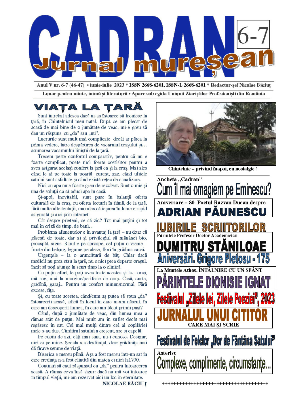 Abonament 4 numere/an. A câștigat PREMIUL LIGII SCRIITORILOR DIN ROMANIA -” PUBLICATIA LITERARA A ANULUI 2023 ” Revista de colecție de o calitate excepțională, integral color, care cuprinde literatura, arta, interviuri, articole si evenimente culturale. Aboneaza-te si colecționează fiecare număr al revistei tipărite timp de un an pentru numai 100 dolari canadieni.