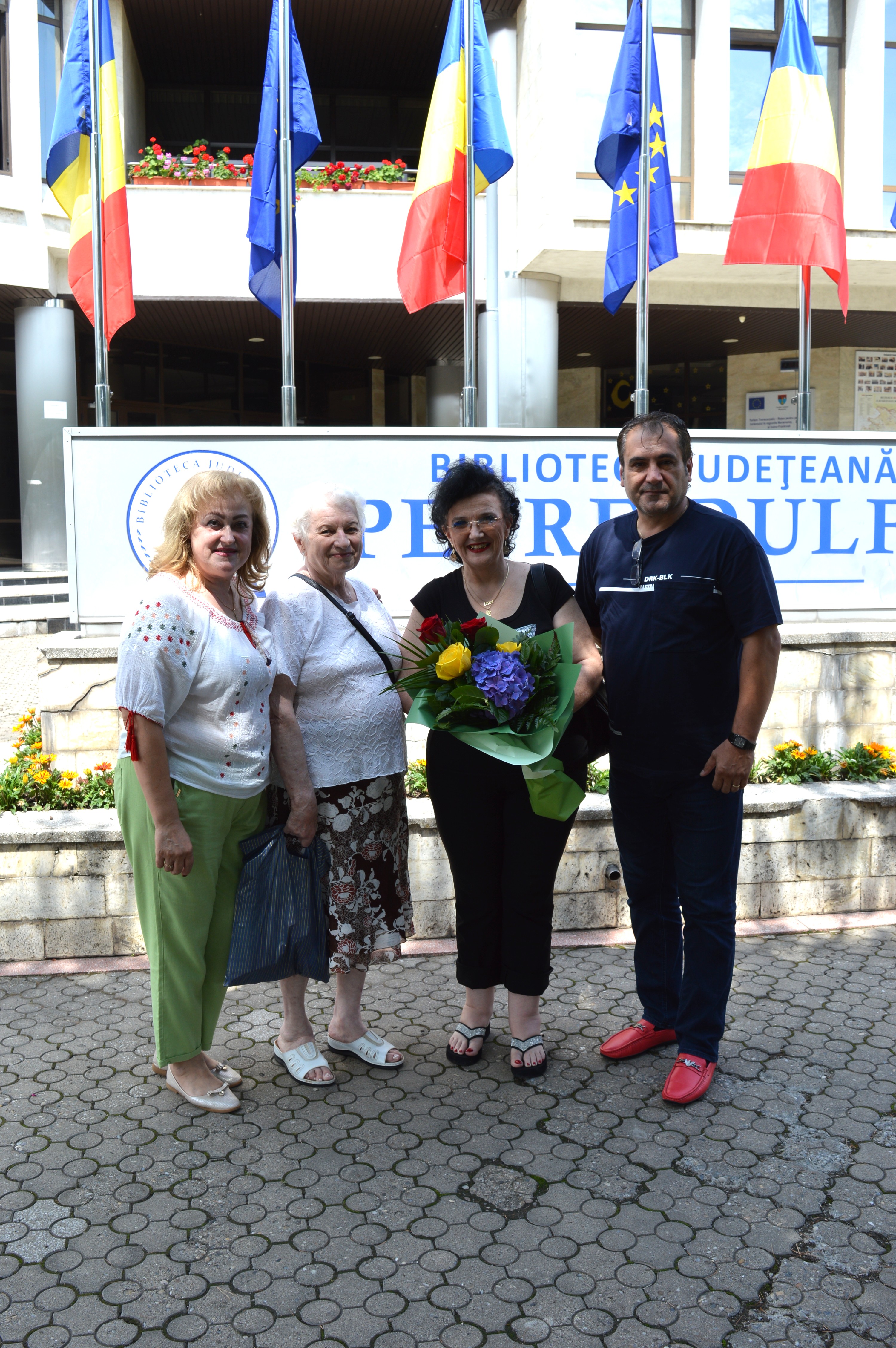 Ajunși la Baia Mare, am fost întâmpinați cu multă onoare în fața Bibliotecii Județene „Petre Dulfu” de un comitet de primire cu un superb buchet de flori în culorile tricolore ale drapelului patriei: roșu, galben și albastru. Emoțiile și vibrațiile inimii au fost pe măsură, iar îmbrățișările călduroase și cărțile valoroase primite în dar încă de la început ne-au dat sentimentul că ne aflăm într-o familie care ne-a așteptat cu mare drag. Comitetul de primire a fost format din: doamna director adjunct Daliana Bonaț, șef serviciu – bibliotecar Alina Lemnean, bibliotecar Ștefan Selek, care a făcut și fotografiile, doamna Aurelia Oancă directoarea și colaboratoarea noastră dragă la revista Poezii pentru sufletul meu (încă din anul 2018) și inițiatoarea acestei invitații extraordinare, minunata doamna Angelica Simionca, bibliotecar și redactor la revista online a bibliotecii, e-Bibliotheca Septentrionalis, publicație cu care colaborăm în mod constant de câtăva ani. Sentimentele pe care le-am trăit acolo au fost intense pornind de la lacrimi de bucurie până la extraordinare surprize.