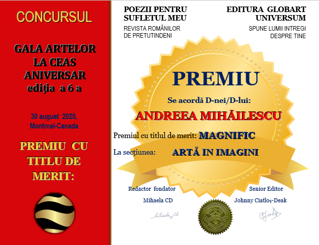 Premiile Concursului GALA ARTELOR la ceas aniversar ediția a 6-a din revista numărul 20/2025 la secțiunea ARTA ÎN IMAGINI