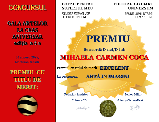 - Gala artelor ediția a 6-a-2025 *DIPLOME DE EXCELENTA oferite LAUREAȚILOR DIN MONTREAL-SECTIUNEA scriitori, artiști plastici si jurnaliști
