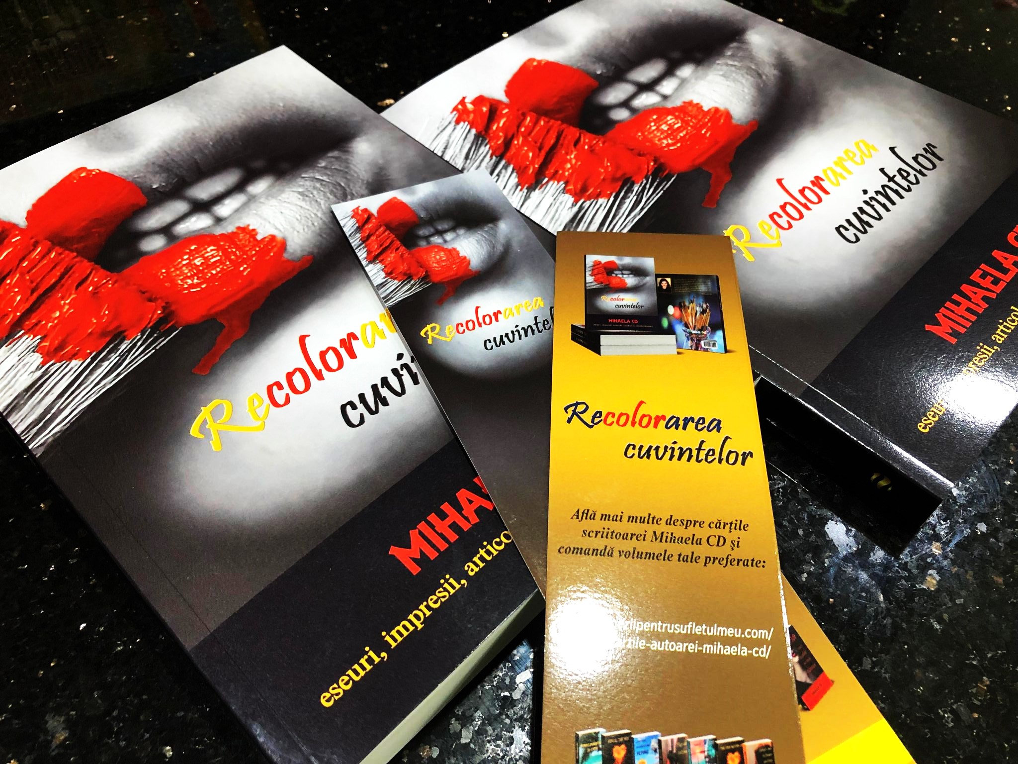 Este o carte de eseuri, impresii, articole, recenzii și cronici literare în limba română, care invită cititorul să privească viața într-un mod optimist recolorând cuvintele în nuanțe vesele și pozitive, încărcând fiecare slovă în haina iubirii, a înțelegerii, a prieteniei. Cartea are 232 de pagini color și este împărțită în 7 capitole, însoțite de imagini reprezentative. Comanda cartea pentru a te bucura de transport gratuit (primele 100 de comenzi) si un semn de carte gratuit.
