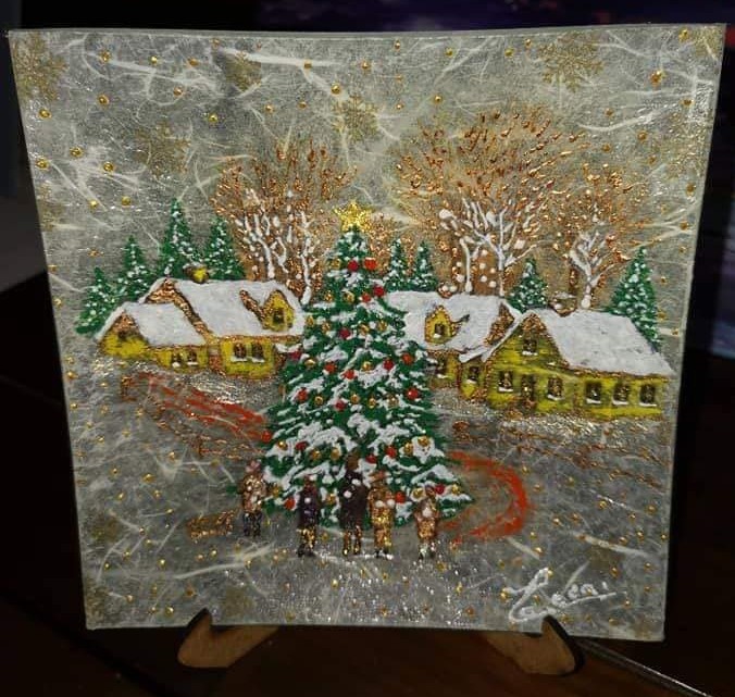 -Pictură pe sticlă-Obiecte decorative de Crăciun