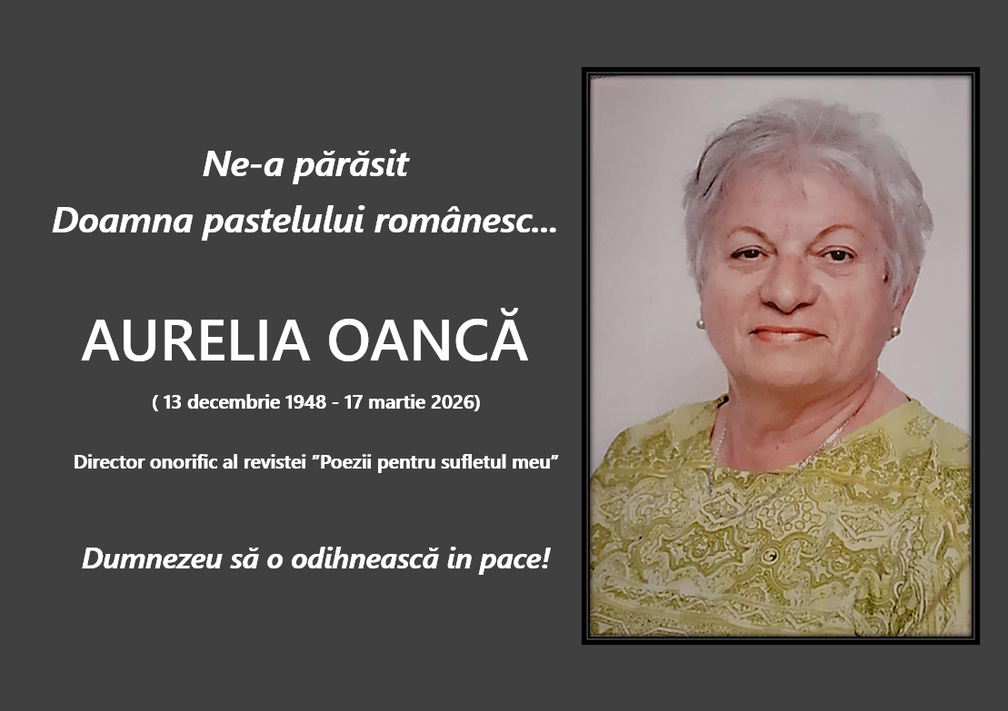 Lumea literară este astăzi mai săracă. Aurelia Oancă, colaborator permanent al Revistei Clubul Artelor Giurgiu XXI, a pus deoparte condeiul și a plecat să se alăture, simbolic, cetei de scriitori din ceruri.