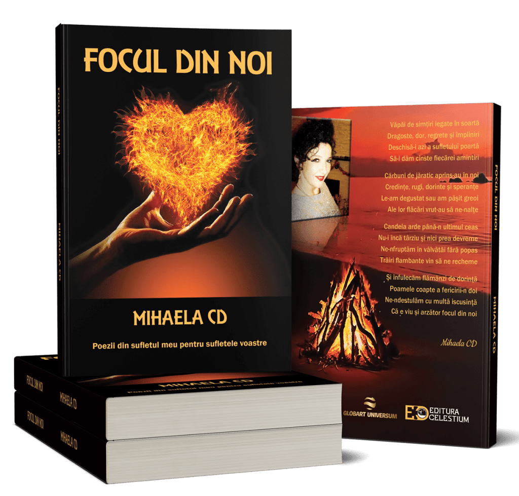 In volumul Focul din Noi al autoarei Mihaela CD, descoperim armonia dintre vers si pictura nascute din focul creatiei artistice.O carte de exceptie, bogata in continut care va va incalzi sufletul!Picturile sunt realizate de artistul Mircea Rustiuc. Comandati acum la pret de 20$ Primesti cartea [240 pagini] in format pdf in emailul tau in mai putin de 48 de ore! Mai ieftin , mai rapid, mai ecologic!